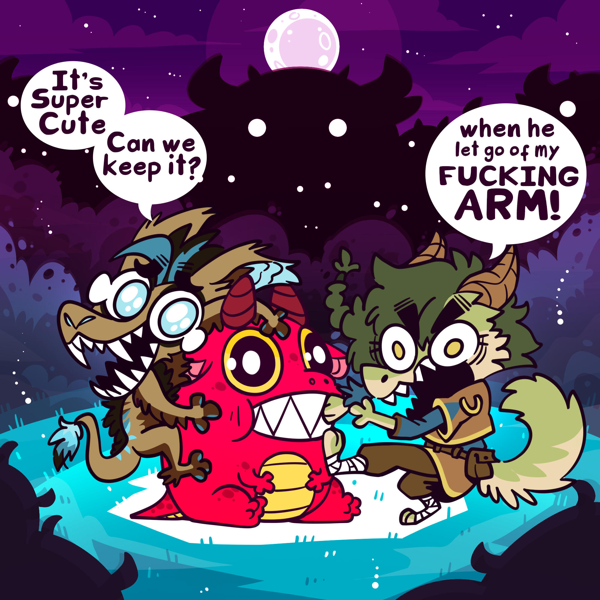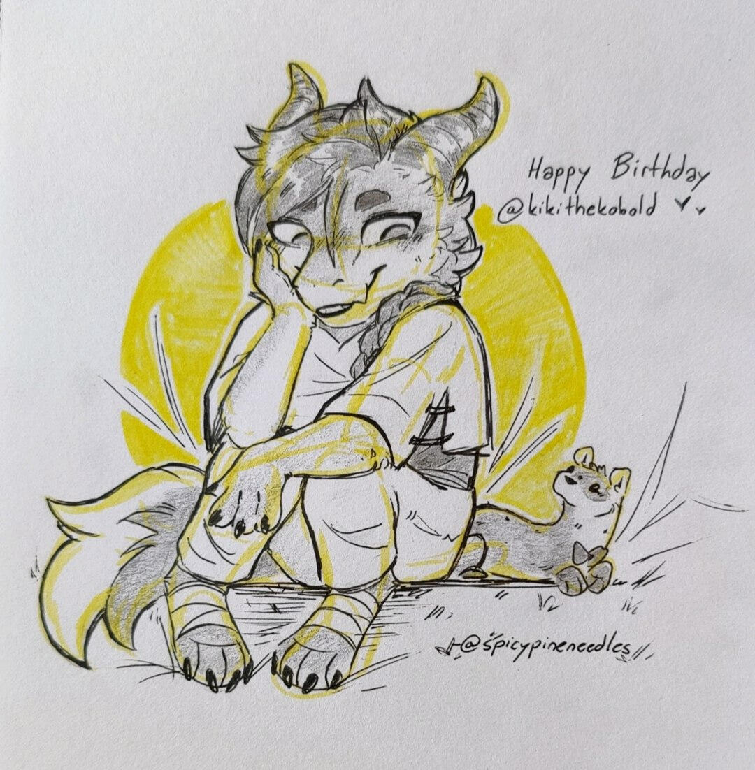 Kiki, a lovable, clumsy kobold druid/solo treasure hunter extrodinaire with a heart of gold. Guided by air magic, she zips through tricky terrain, communes with birds, and looks for the shiniest trinkets and baubles she can find. Though she adventures alone, she’s backed by a loyal circle of friends <3.