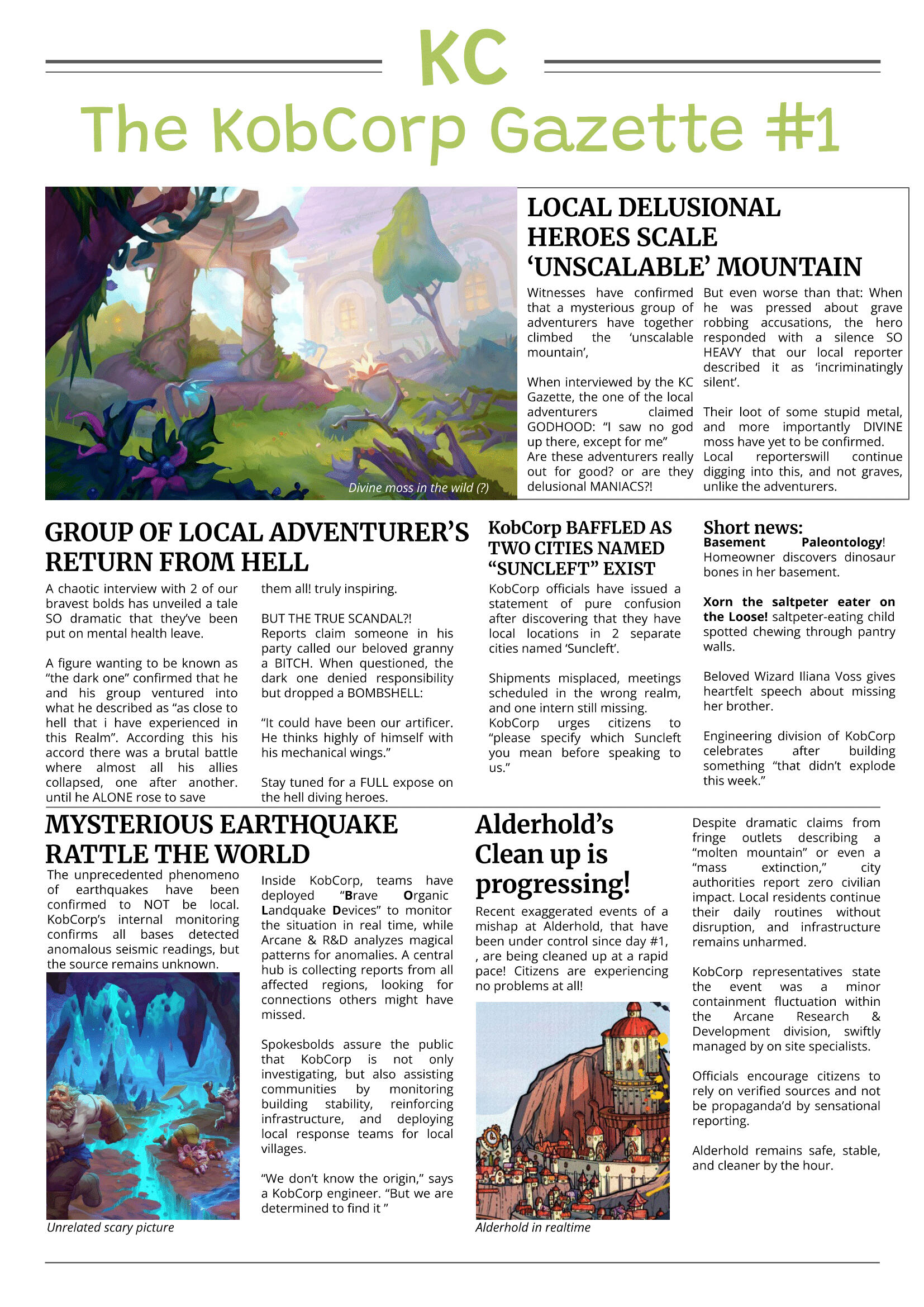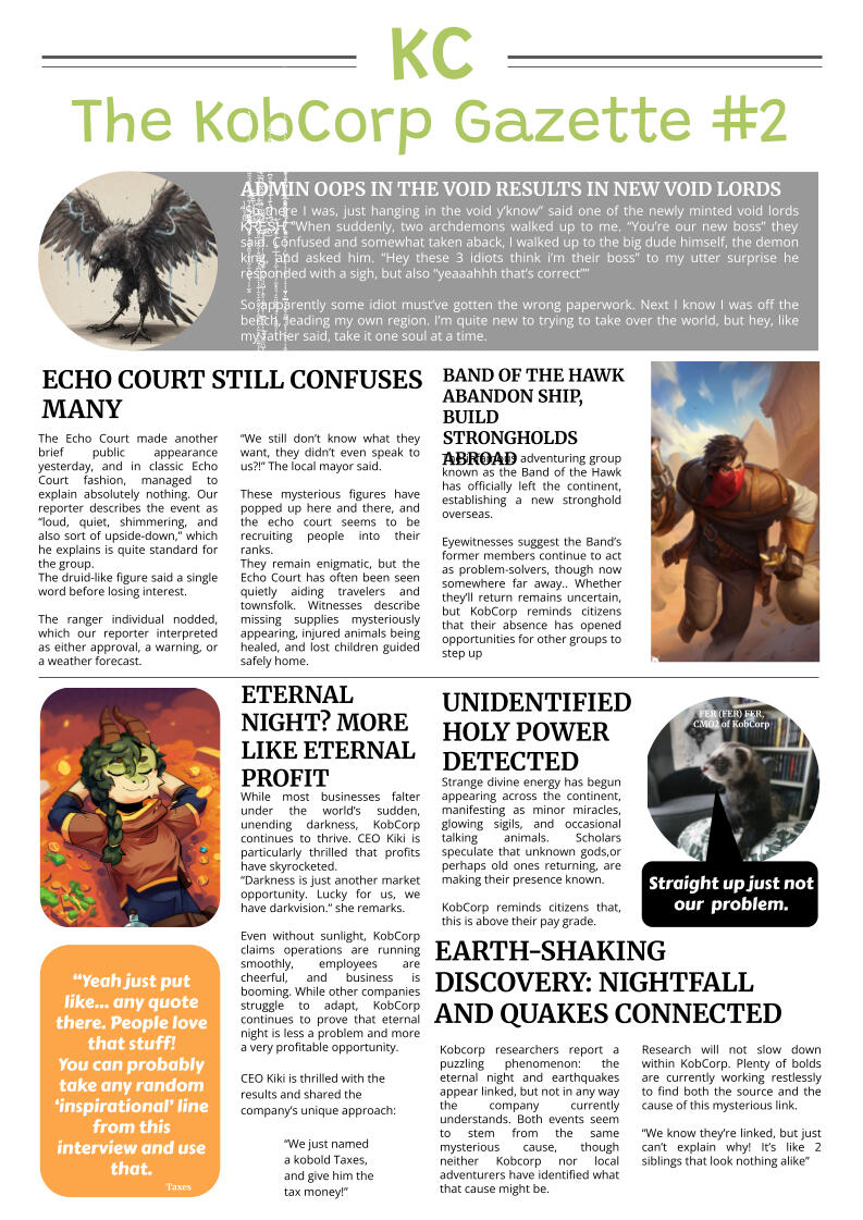 Self described Inventive geniuses, Kobcorp is the newest venture of a bunch of Kobolds, seeking infinite wealth (and there fore infinite shinies)